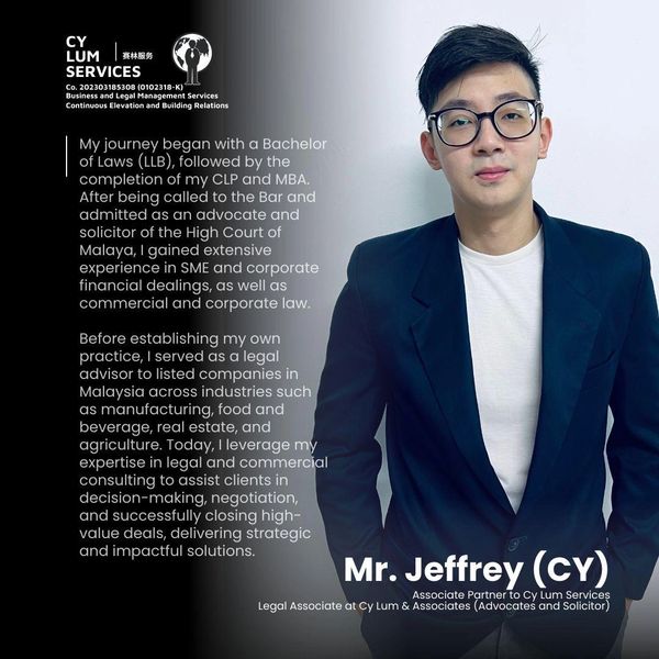 At CY LUM SERVICES, we turn ideas into action by delivering clear, structured, and enforceable business solutions. Since our establishment in 2022, we have supported more than 300 clients—ranging from startups and SMEs to multinational corporations—facilitating transactions exceeding RM100 million across diverse industries including F&B, construction, logistics, real estate, manufacturing, education, healthcare, agriculture, fashion, events, IoT, and beyond.